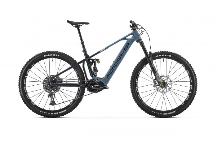 MONDRAKER CRUSHER R DENIM BLUE est équipé d'une fourche Öhlins RXF 38 M.2 29, d'un pédalier SRAM X01 Eagle, de freins CODE Bronze Stealth, d'une tige de selle ONOFF Pija (avec un débattement de 125 à 200 mm selon la taille du cadre) et de freins Maxxis Minion DHF/DHR II 2,6" EXO+. Disponible en 'Denim Blue - Navy Blue - Racing Silver'.